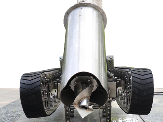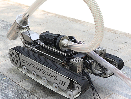 This pipeline dredging robot is mainly used for dredging in pipelines of 600-2,000mm diameter. It also applies to underwater and underground pipelines. This robot uses single-phase 220V as the power source, which is converted from the power supply to DC48V, and the DC motor is used as the torque output. It integrates the dual-motor independent control solution and our core closed-loop control algorithm, realizing the robot’s accurate and flexible operation control.